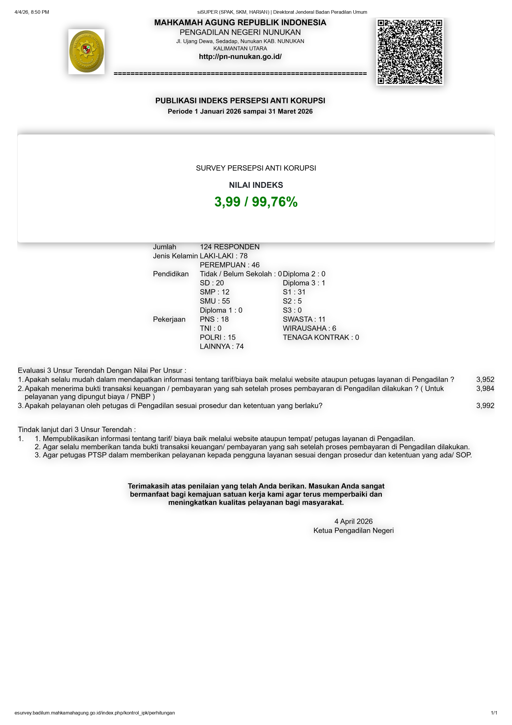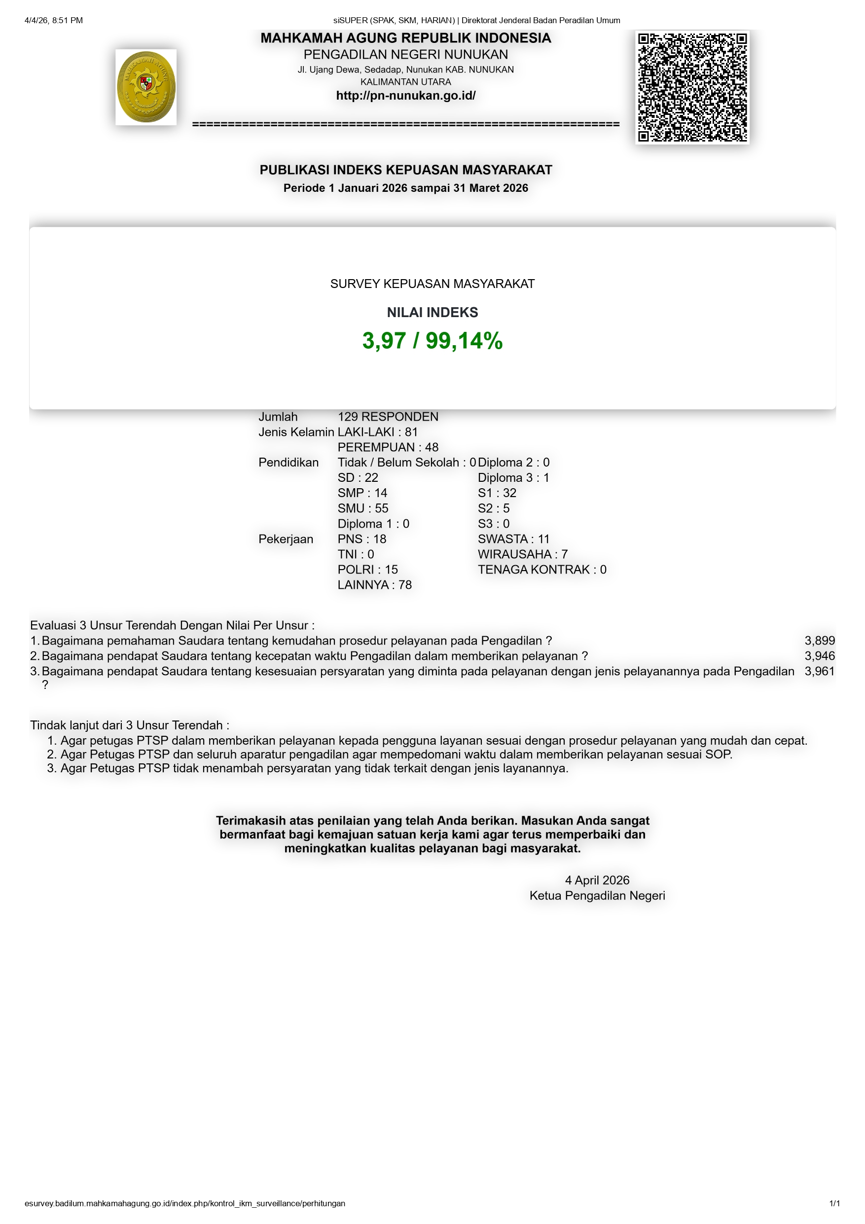 Pengawasan dan Pengamatan di Lembaga Pemasyarakatan Kelas IIB Rabu, 15 April 2026Hakim Pengawas dan Pengamat Pengadilan Negeri Nunukan, Bapak Untung Surapati, S.H., Bapak Rifaldo Rizal,...