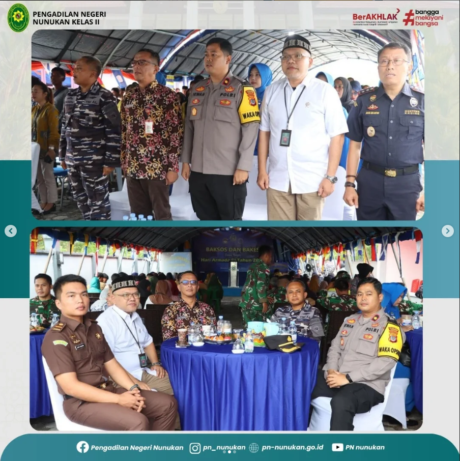 Ketua Pengadilan Negeri Nunukan, Bapak R. Narendra Mohni I., S.H., M.H. menghadiri kegiatan Bakti Sosial dan Bakti Kesehatan yang diselenggarakan oleh Pangkalan TNI Angkatan Laut (Lanal) Nunukan dalam rangka Memperingati HUT Koarmada RI Tahun 2025.