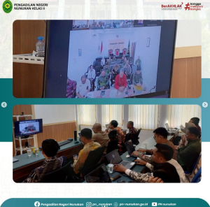 Nunukan, 11 Desember 2025 – Bertempat di Ruangan Media Center Pengadilan Negeri Nunukan, Ketua Pengadilan Negeri Nunukan , Bapak R. Narendra Mohni I., S.H., M.H., dan Wakil Ketua bersama Para Hakim, Panitera, Panitera Muda Perdata, Panitera Muda Hukum beserta Kasubag Umum dan Keuangan dan Pegawai PN Nunukan mengikuti kegiatan Rapat Koordinasi Ketua Pengadilan Tinggi Kalimantan Utara kepada jajaran Pengadilan Negeri Sewilayah Hukum Kalimantan Utara secara daring.