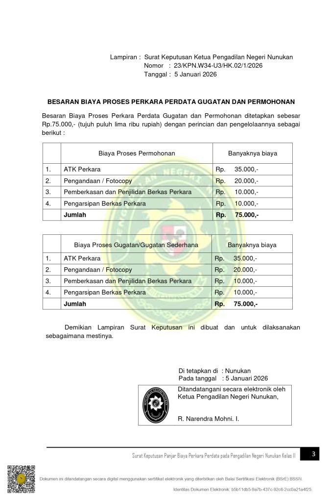 Prosedur Pengajuan Perkara dan Biaya Perkara
